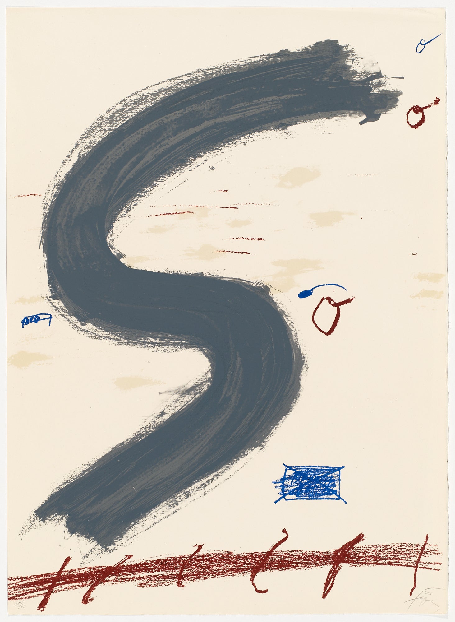 Each lithograph by Tàpies from the Poems from the Catalan II series is sold with a single two-sided sheet featuring Joan Brossa's visual poetry, translated by Arthur Terry.