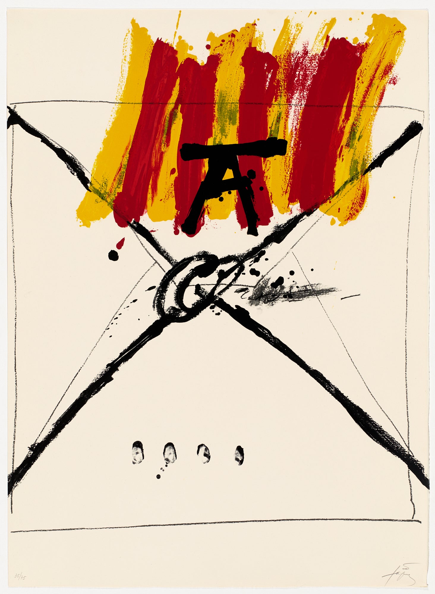 Each lithograph by Tàpies from the Poems from the Catalan II series is sold with a single two-sided sheet featuring Joan Brossa's visual poetry, translated by Arthur Terry.
