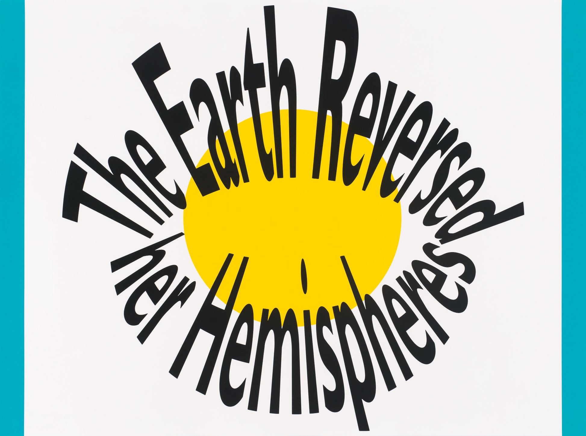 Screenprint, printed in yellow, blue and black ink, from three stencils.